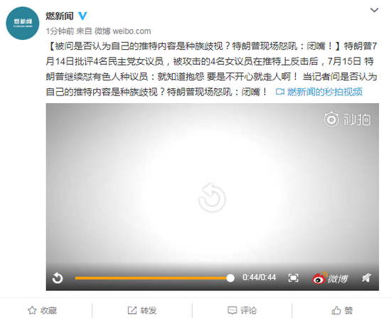被问是否认为自己的推特内容是种族歧视?特朗普现场怒吼:闭嘴!